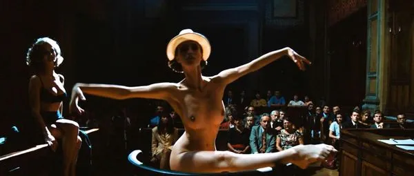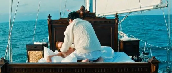 最初のシーンで。アレッサンドラ・マルティネスは夢のシーケンス中に裸で見られます。彼女は海の真ん中で帆船の上にあるベッドに横たわっています。男が彼女を絞め殺し、そして立ち去って、彼女の裸のおっぱいをよく見てくれます。彼はベッドの周りを急いで彼女をチェックし、それから彼女を毛布で覆い、カメラはこれらの完璧なおっぱいをズームインします。