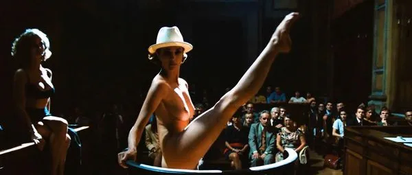 ダンサーのアレッサンドラ・マルティネスは、暗い法廷の真ん中でゆっくりと全裸で立っています。それから彼女は彼女の裸の猫、彼女の足の間に茂みを見せて彼女の足を空中に伸ばしています。彼女は法廷の人々が見ている間、ストレッチをしてから部屋の周りで踊り始めます。