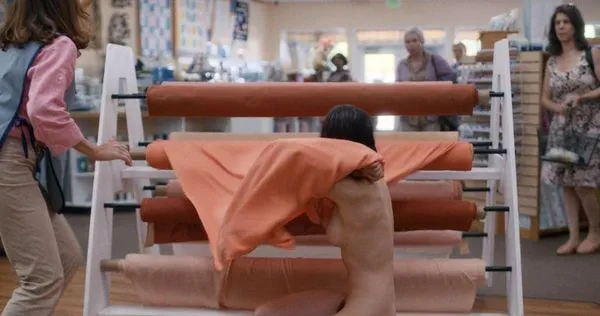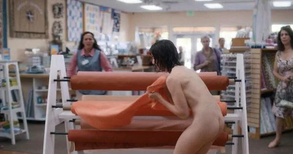 アリソン・ブリーが店の床に全裸で足を踏み入れているのが見られます。彼女が前に歩き、人々が彼女を見つめているとき、私たちは彼女の裸のおっぱいと毛むくじゃらオマンコを見ることができます。次に、彼女は布の棚の近くに移動し、ひざまずきます。誰かが彼女を布で包むことによって彼女の隠蔽を助けます。 2020年からの最新シーンです。