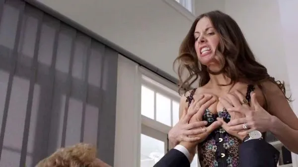 同じ映画から、アリソン・ブリーがシャツのボタンを外すときに男と仲良くしているところです。それから、男が彼女とセックスするために身を乗り出している間、彼女のブラジャーと胸の谷間を露出させてテーブルに横になりました。